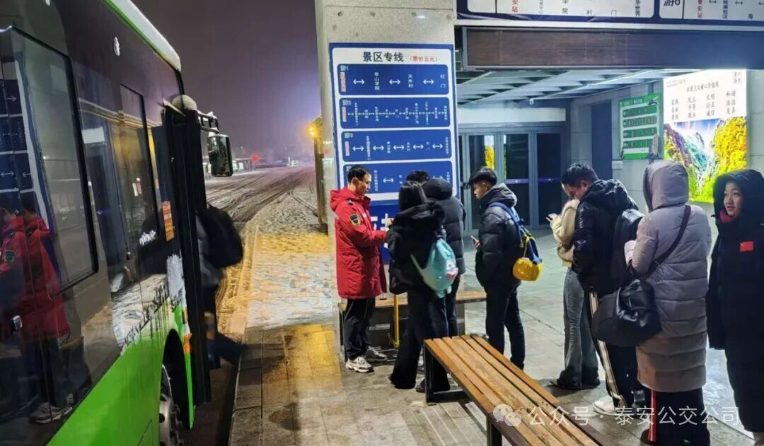 當(dāng)日,泰城遭遇降雪天氣,強(qiáng)降雪導(dǎo)致路面濕滑難行,受降雪天氣影響多趟高鐵列車晚點(diǎn),大量乘客出行需求異常迫切。按照泰安公交安排部署,為全力保障乘客出行暢通,泰安公交第五分公司迅速啟動(dòng)應(yīng)急保障機(jī)制,第一時(shí)間強(qiáng)化與高鐵站的信息聯(lián)動(dòng),安排專人實(shí)時(shí)對(duì)接列車晚點(diǎn)及旅客聚集情況,精準(zhǔn)調(diào)度、增派運(yùn)力,用責(zé)任與堅(jiān)守搭建起風(fēng)雪中的“暖心通道”。