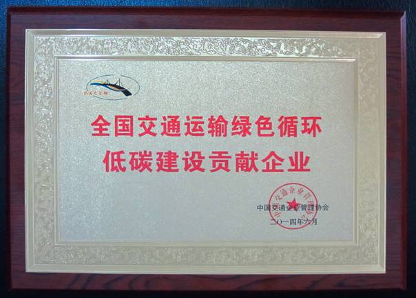 全國交通運輸綠色循環(huán)低碳建設貢獻單位